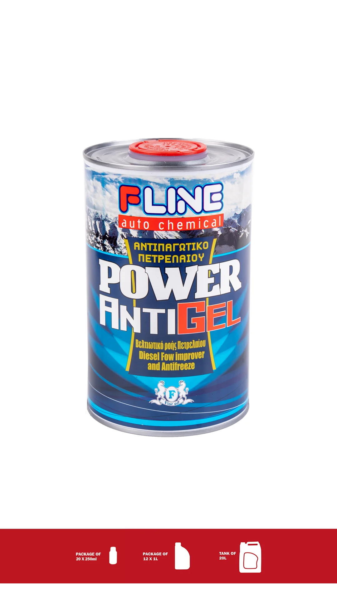 Αντιπαγωτικό πετρελαίου που βελτιώνει την ικανότητα ροής του σε χαμηλές θερμοκρασίες. Προστατεύει το σύστημα καυσίμου από φθορές και διάβρωση, φροντίζει για καθαρούς αγωγούς και φίλτρα και επιβραδύνει τον σχηματισμό κρυστάλλων κήρου από τις παραφίνες που περιέχονται στο πετρέλαιο. Μειώνει το σημείο απόφραξης ψυχρού φίλτρου (CFPP) ως και 12οC σε σύγκριση με άλλα προϊόντα της αγοράς. Κατάλληλο για όλους τους κινητήρες Diesel, TurboDiesel και Common-Rail-Diesel. Χρησιμοποείται σε αναλογία 1L:1000L με το πετρέλαιο.