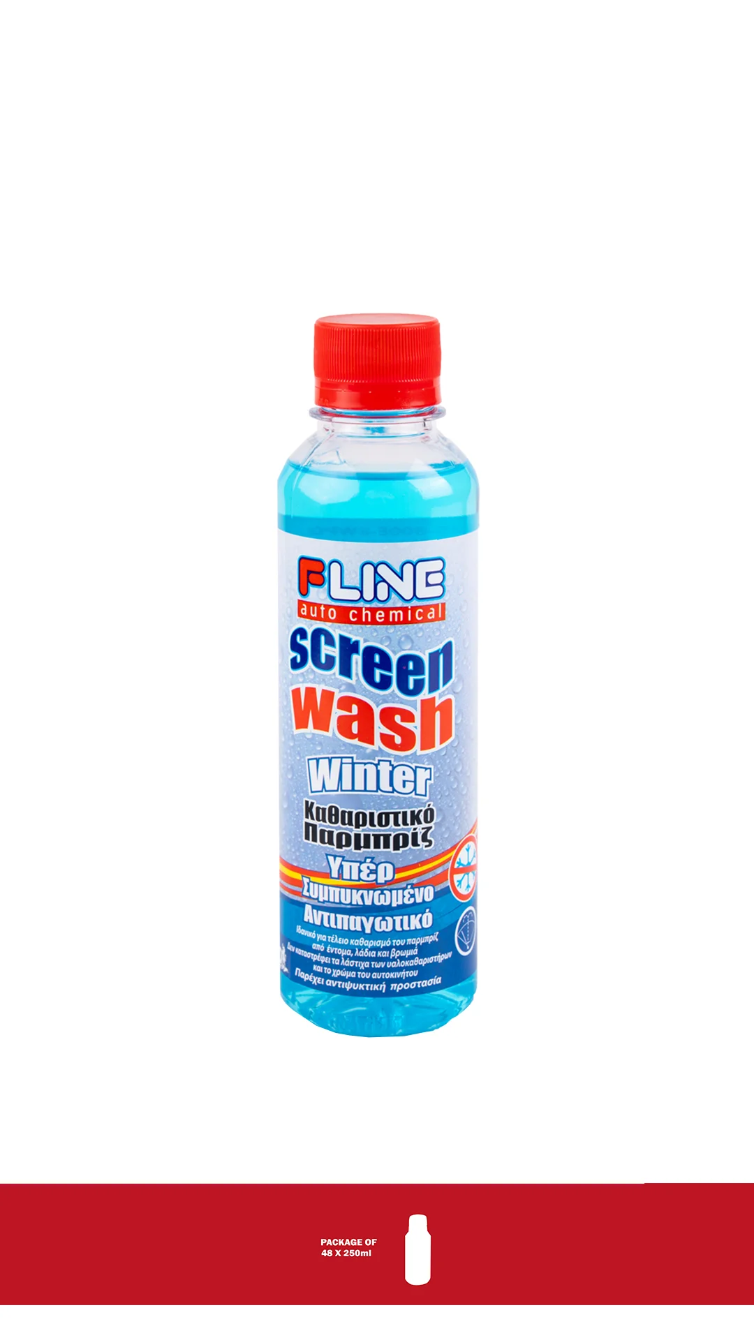 Υπερσυμπυκνωμένο καθαριστικό παρμπρίζ για καθαρισμό από έντομα, λάδια και βρωμιά, παρέχοντας παράλληλα αντιψυκτική προστασία. Δεν καταστρέφει τα λάστιχα των υαλοκαθαριστήρων ούτε το χρώμα του αυτοκινήτου. Δεν χρησιμοποιείται αυτούσιο. Αραιώνεται με νερό σε αναλογίες σύμφωνα με τον πίνακα της μπουκαλιού για επίτευξη της επιθυμητής προστασίας βάση θερμοκρασίας. Προτείνεται ιδιαίτερα κατά τους χειμερινούς μήνες.